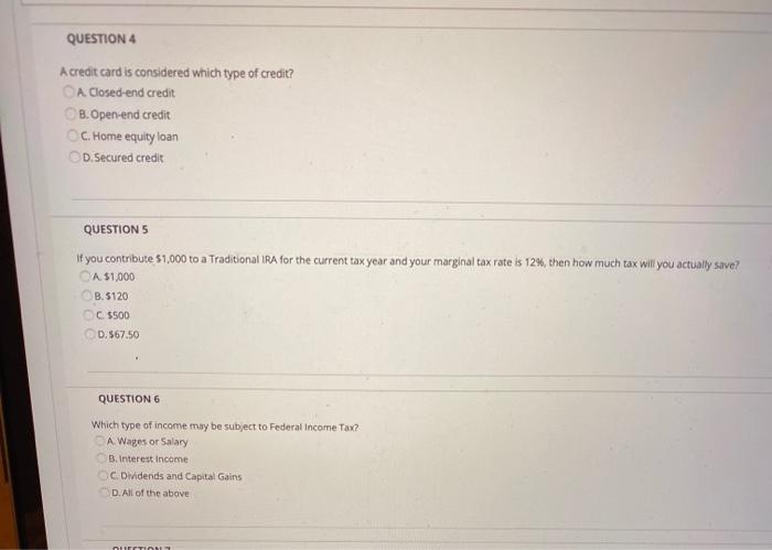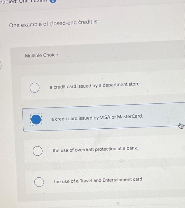 Plz Help What Is One Type Of Closed End Credit A A Credit Card B A Retail Credit Card C An Brainly Com